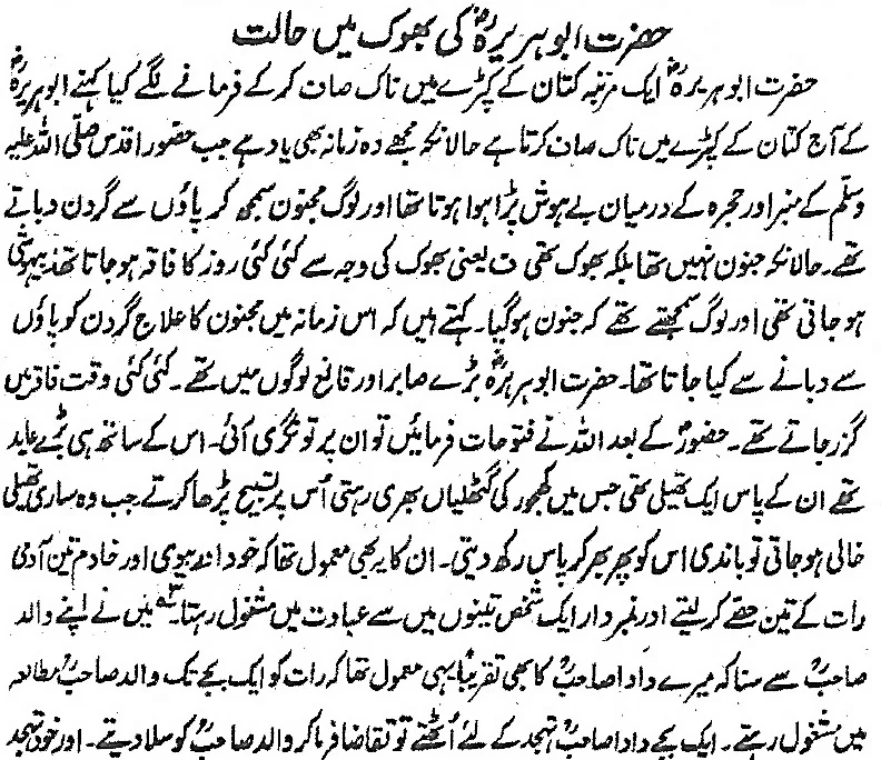 Story of Hazrat Abu Hurayrah in a State of Hunger